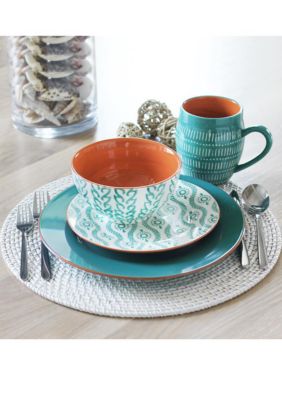 Four 11 round dinner. Choose from contactless Same Day Delivery Drive Up and more. This 16-piece Tangiers Turquoise Dinnerware Set features an eye-catching tile design and a durable stoneware construction.