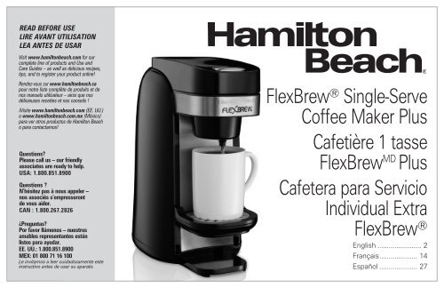Hamilton Beach 49997 Flexbrew Coffee Machine. Questions Please call us our friendly associates are ready to help. Para ver otros productos de Hamilton Beach o para contactarnos.
