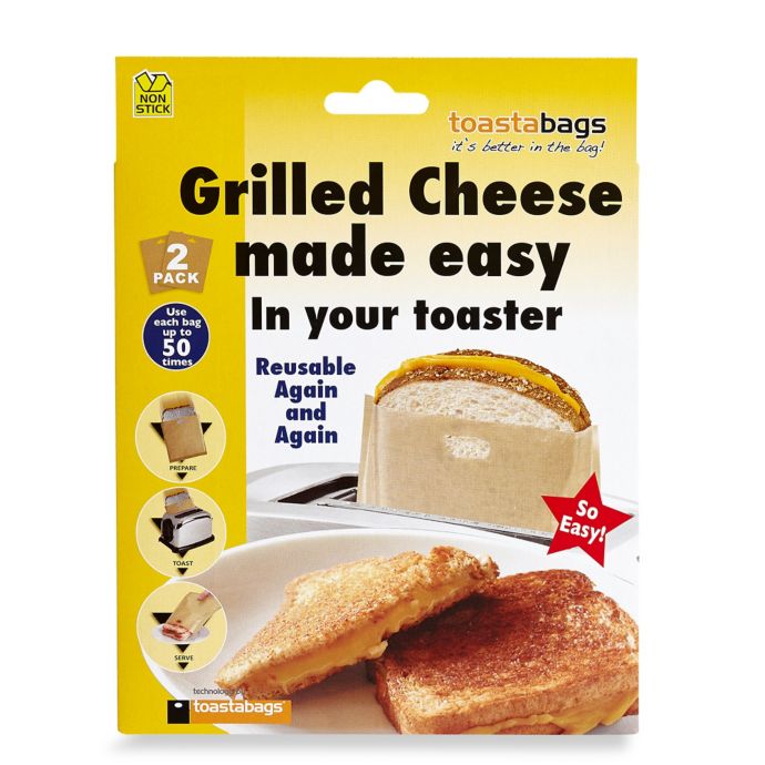 Toaster bags for grilled cheese. With the Toastabags you can make delicious grilled cheese sandwiches in your sandwich maker or toaster. Use the Sandwich Toaster Toast Bags tocook grilled cheese sandwiches quick and efficientlyin your regular toaster. With no mess and no crumbs your appliance will remain clean and the sandwich will retain its full flavor.