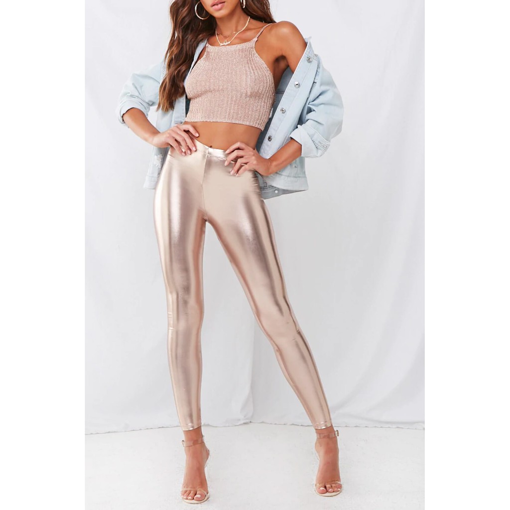 Forever 21 Women S Metallic Faux Leather Leggings Rose Gold Shopee Philippines