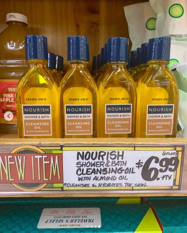 Trader Joea S Nourish Shower Bath Cleansing Oil With Almond Oil Is Made With A Luxurious Blend Of Sweet Almond Grape Seed In 2021 Cooking Recipes Food Nourishment