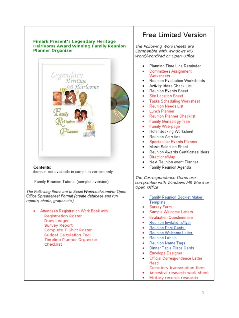 Free Family Reunion Planner Hotel Worksheet