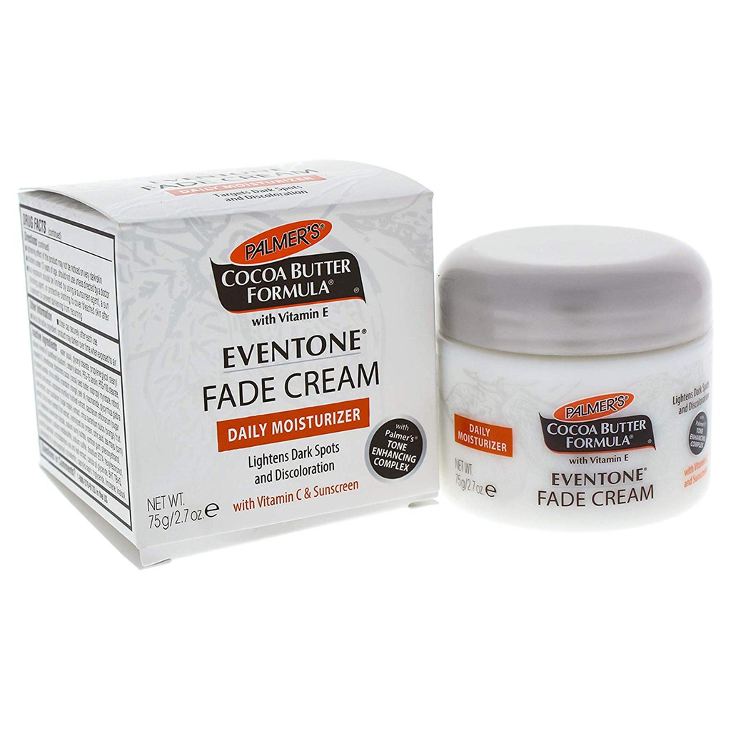 This Fade Cream is formulated using the best ingredients within our Tone Improving Complex to assist fade undesirable discoloration dark spots or age spots brought on by sun damage aging skin or scarring. With Palmers cocoa Butter Formula Eventone Fade Cream. Palmers Cocoa Butter Formula Eventone Fade Cream Daily Moisturizer This version is seen as the most popular cocoa butter at this moment.