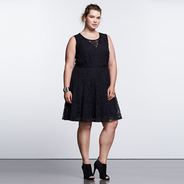 Plus Size Simply Vera Vera Wang Simply Noir Lace Fit Flare Dress